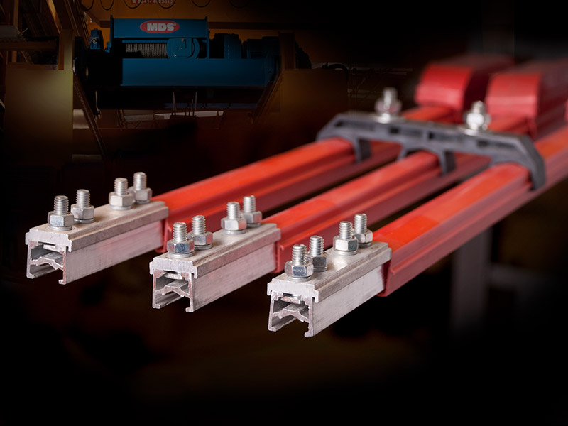 Barras conductoras individuales para cada fase, robustas y de gran capacidad, sin partes vivas expuestas disminuyendo el riesgo de contacto accidental, muy bajo mantenimiento reduciendo el tiempo inactivo y las paradas imprevistas de las grúas, contacto en V lo que permite el correcto guiado de las escobillas. Capacidad: 500 Amp, 700 Amp, 1000 Amp, 1500 Amp. Aplicaciones: grúas puente y grúas pórtico de gran tamaño y altas velocidades de traslación.