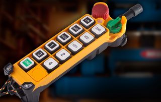 Diseño ergonómico y robusto 10 pulsadores doble efecto parada de emergencia interruptor ON/OFF rotativo c/llave Aplicaciones: todo tipo de sistemas de grúas, carros transportadores, grúas de torre, montacargas de obras civiles operados desde diferentes alturas, plataformas y grúas montadas en camiones, etc.