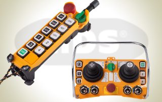 Radiocontroles MDS compatible para todo tipo de sistemas de grúas Aplicaciones: sistemas de grúas con amplios rangos de velocidad, grúas para tareas de precisión, grúas con electroimanes, pulpos y dispositivos electromecánicos de toma de cargas en general, grúas siderúrgicas, controles desde cabina de mando, grúas torre, etc. Descripción: 2 joysticks XY (2 ejes) con 5 escalonamientos de velocidad 6 pulsadores simple efecto 2 switchs de 3 posiciones 2 switchs de 2 posiciones Parada de emergencia Interruptor ON/OFF rotativo c/llave