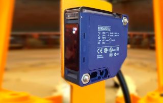 Detector fotoeléctrico de proximidad tipo reflex, especialmente indicado para grúas que circulan en el mismo camino de rodadura. Ante una aproximación riesgosa, detiene la marcha de la grúa evitando la colisión con la otra, disminuyendo el riesgo de accidentes y eventuales desperfectos en los equipos. La distancia de aproximación permitida es fácilmente regulable hasta 4 mts aproximadamente