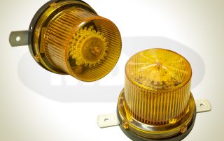 Elementos de señalización sonora y lumínica de LED con tulipa de policarbonato de alta resistencia, que conectados al movimiento de traslación de la grúa, disminuye el riesgo de accidentes por colisión con operarios o eventuales obstáculos en su recorrido.